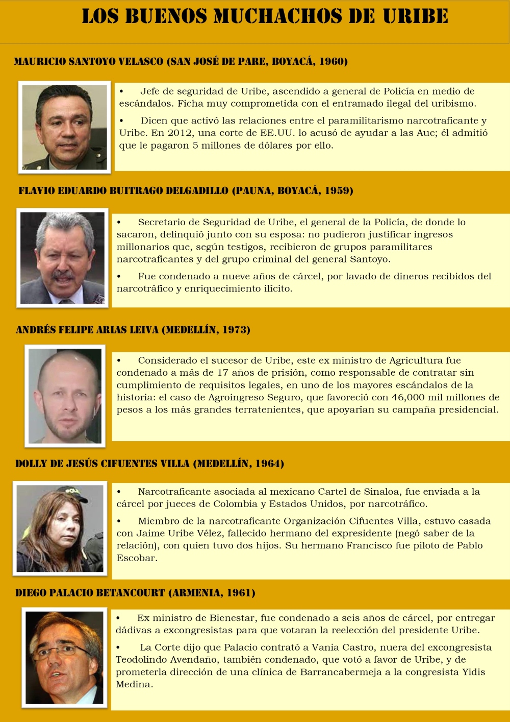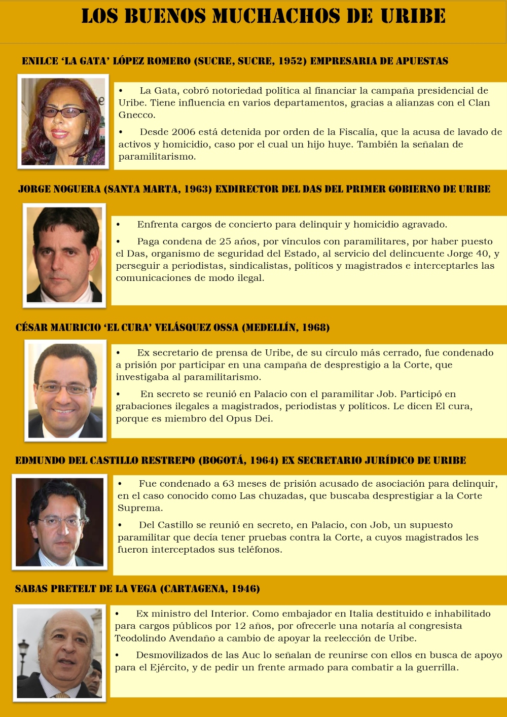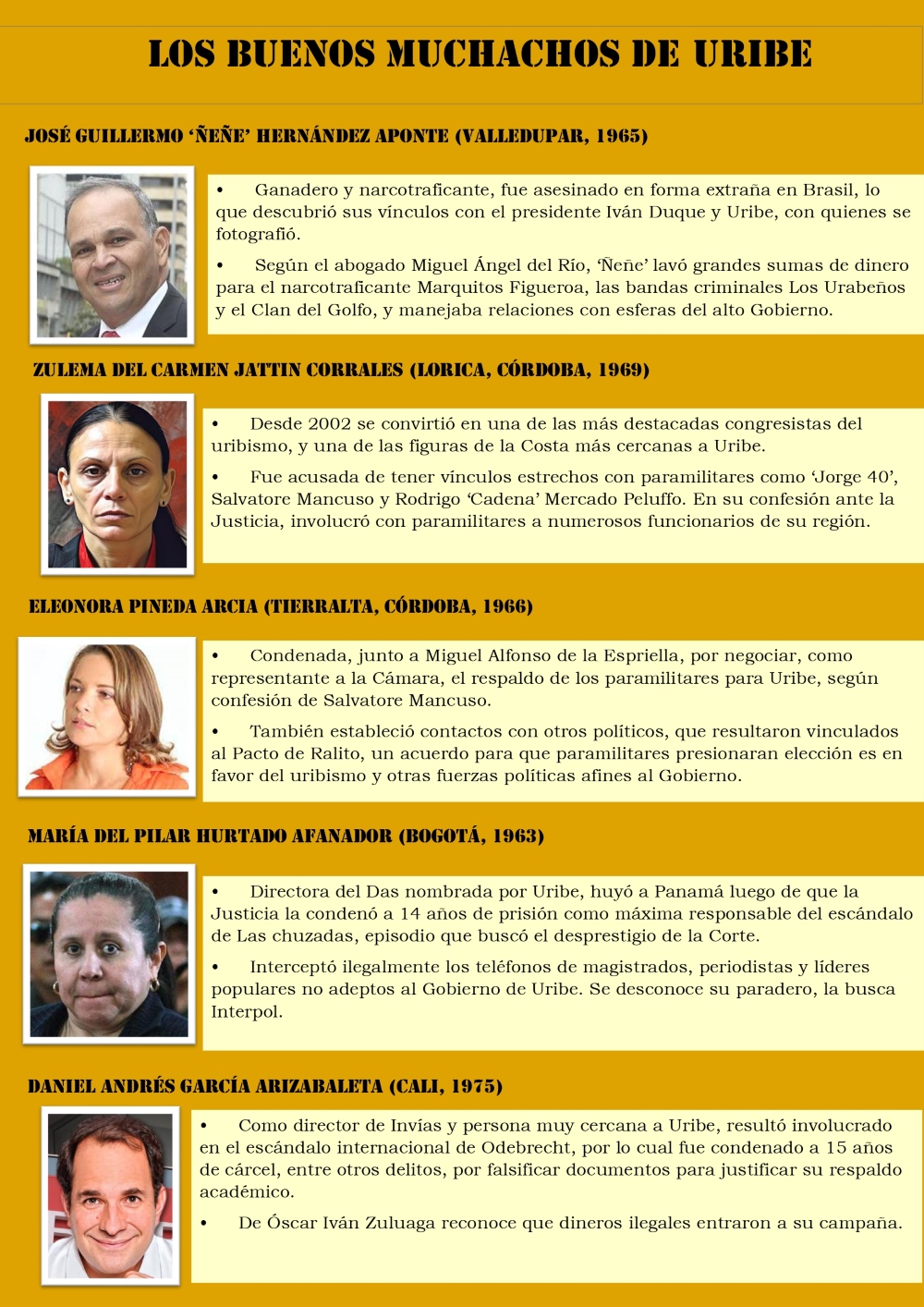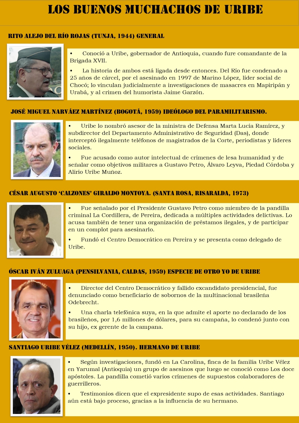 Desde conspiradores contra la Corte Suprema de Justicia hasta asesinos, pasando por civiles y militares vinculados a grupos paramilitares y al narcotráfico…
