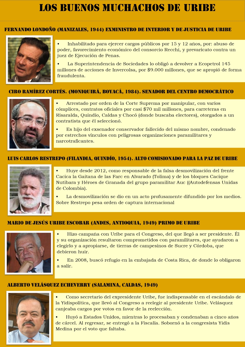 Algunos han muerto luego de purgar penas o bajo investigaciones; otros, pusieron tierra por medio entre ellos y la Justicia que los busca, pero todos han tenido que ir a los estrados a responder por sus faltas.
